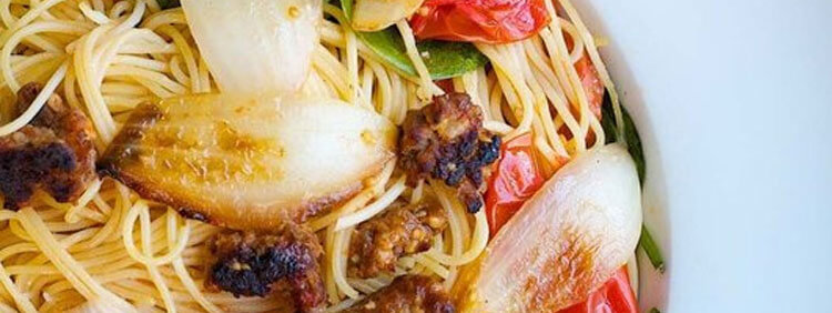 Fresh Tomato Sauce, Sausage and Sweet Onion Pasta